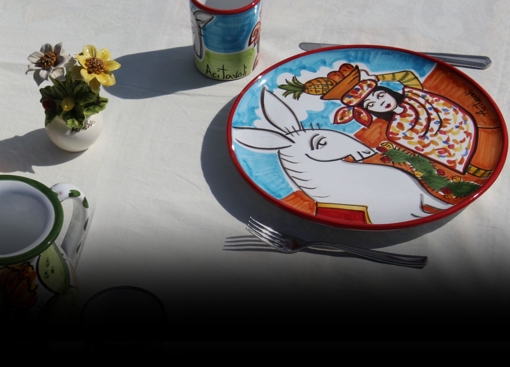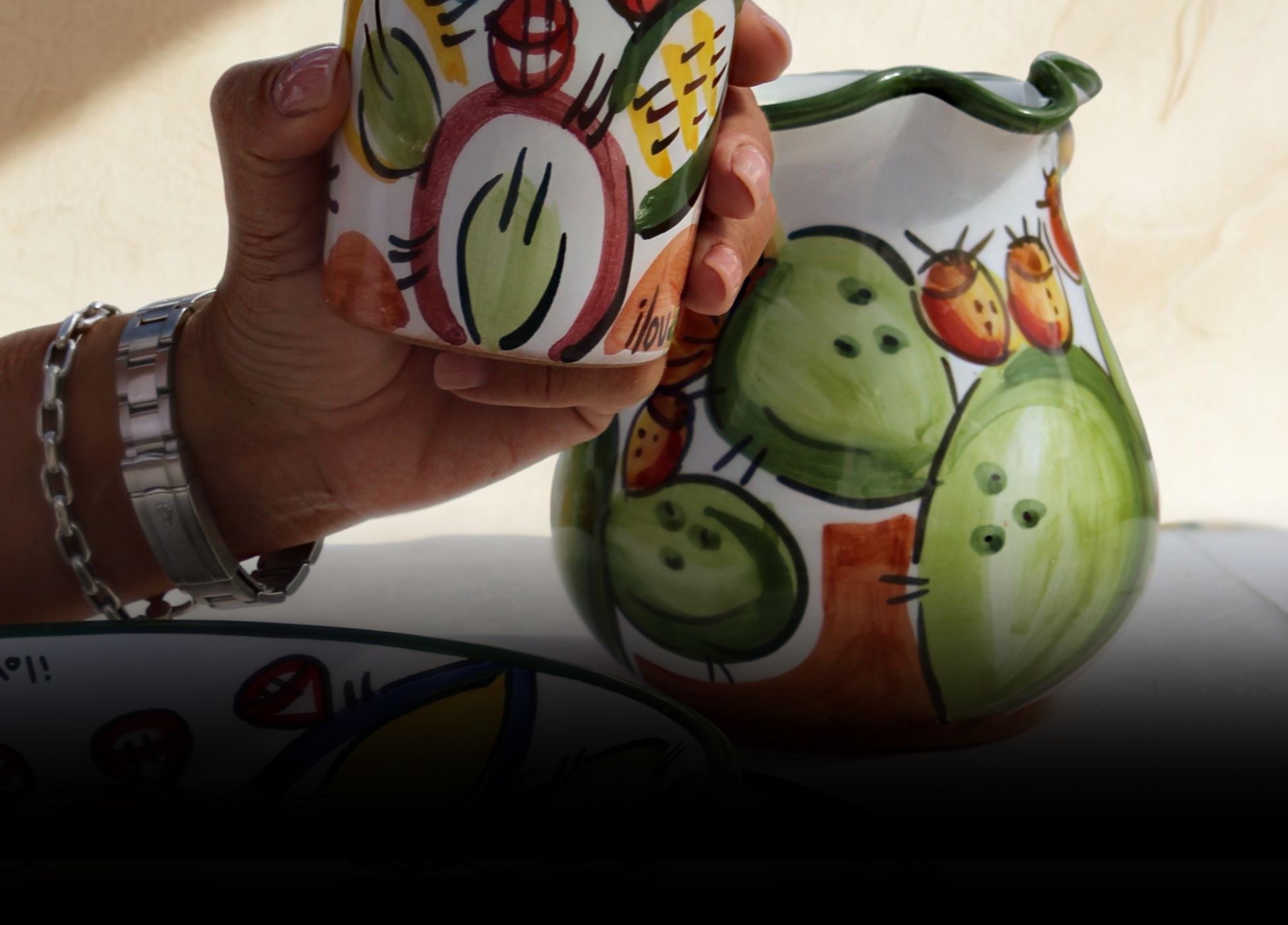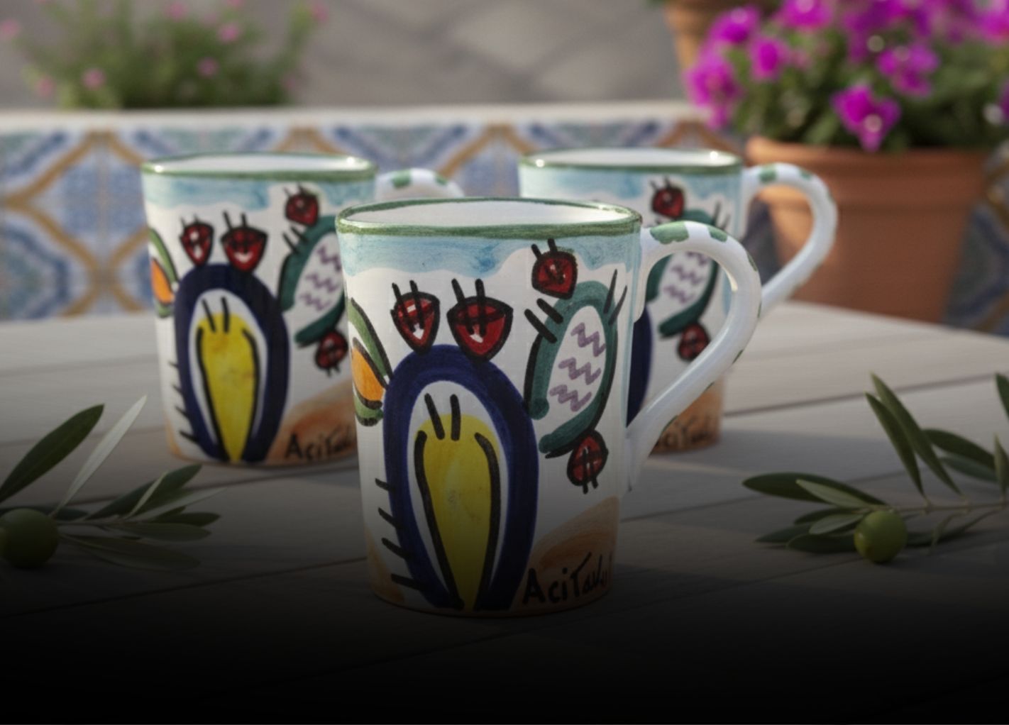 Acitavoli nasce a Vulcano Porto (ME) e realizza a mano tavoli in pietra lavica ceramizzata e ceramiche artistiche per la tavola. Ogni pezzo è modellato, smaltato e dipinto secondo la tradizione siciliana, con colori atossici e apiombici, per unire bellezza e uso quotidiano. Dalla nostra bottega arrivano piatti, bicchieri, brocche e vasi che portano in casa i colori dell’isola e la bellezza della nostra terra siciliana. Su richiesta realizziamo pezzi unici personalizzati, dalle dimensioni ai decori, fino ai colori, per trasformare ogni idea in un oggetto esclusivo.