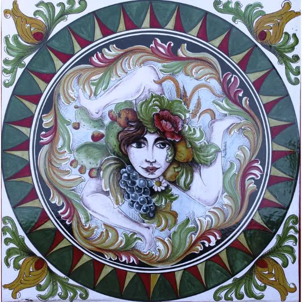 Piano in pietra lavica dell’Etna, ceramizzato e decorato a mano con la Trinacria, simbolo millenario della Sicilia, incorniciata da motivi barocchi e colori vivaci. Un’opera che celebra la tradizione, la forza e la bellezza dell’isola.